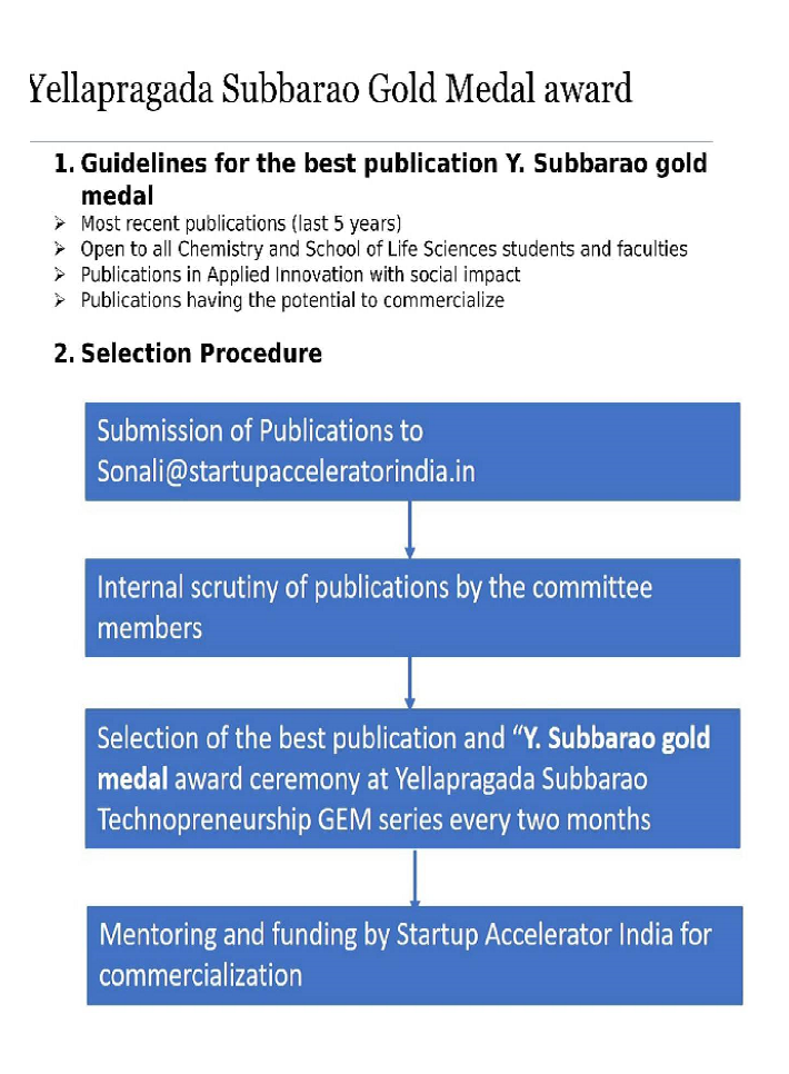 Yellapragada Subbarao Technopreneurishp GEMS & Gold medal for Best Publication of Social Relevance