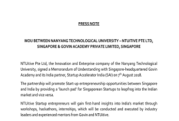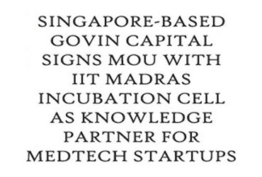 SINGAPORE’S GOVIN CAPITAL SIGNS MOU WITH IIT MADRAS INCUBATION CELL. 19 JANUARY 2016