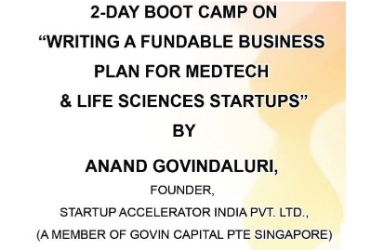 2 DAY BUSINESS PLAN BOOT CAMP FOR MEDTECH & LIFE SCIENCES STARTUPS HELD AT IITM RESEARCH PARK, CHENNAI 26 & 27 AUGUST 2016