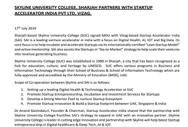 MOU WITH SKYLINE UNIVERSITY COLLEGE, SHARJAH