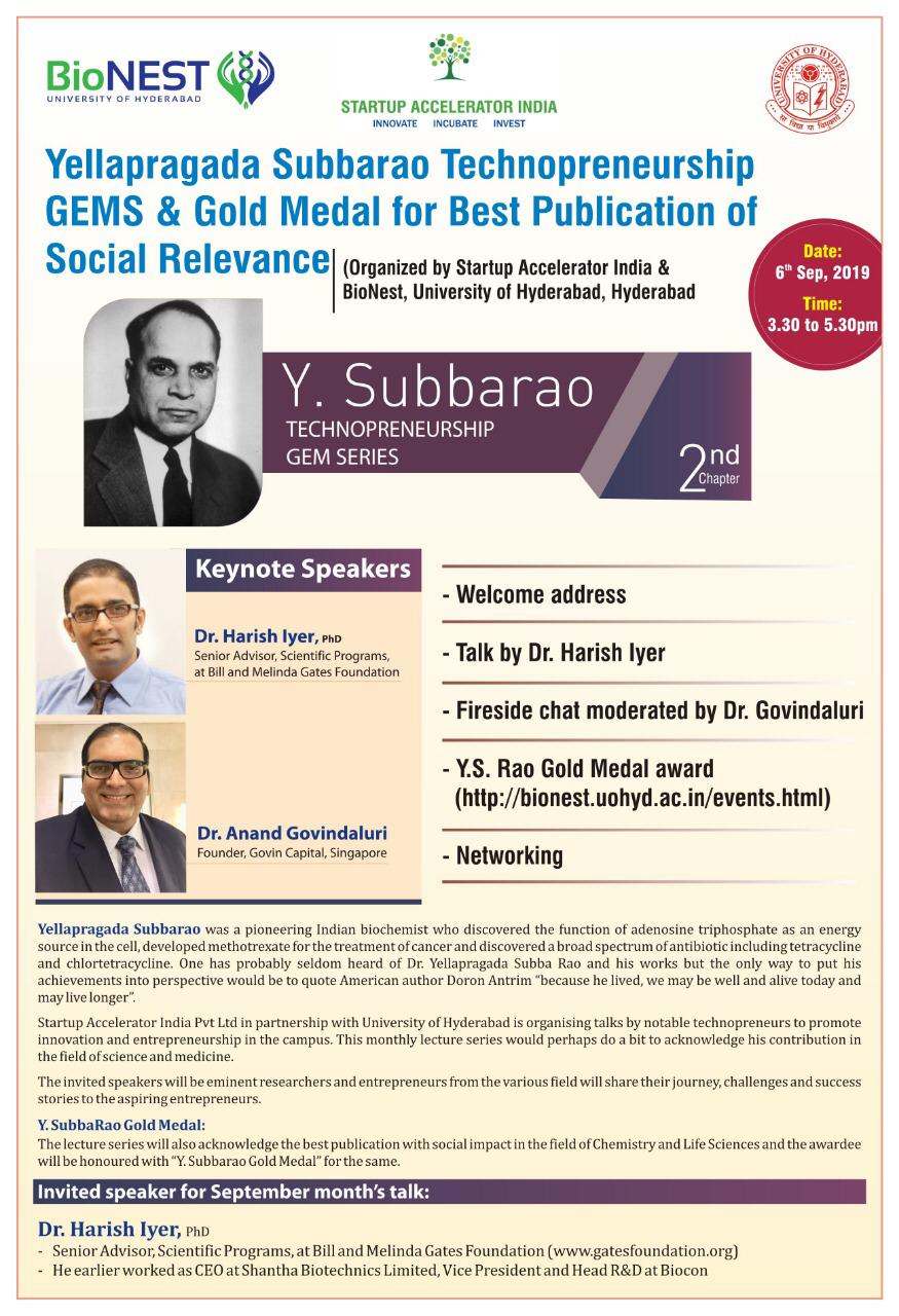 Yellapragada Subbarao Technopreneurishp GEMS & Gold medal for Best Publication of Social Relevance