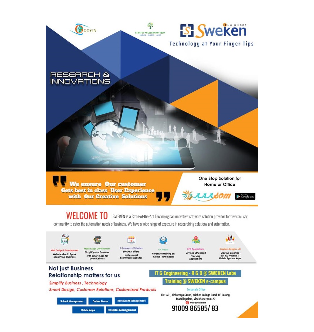 Visit ThemSWEKEN is a State-of-the-Art Technological innovative software solution provider. We have successfully delivered many projects for diverse business communities. We have a wide range of exposure in research, architecting and building enterprise wide applications. Our focus is to provide a world class user experience with most user friendly and highly customizable solutions using latest trends in Information Technology (IT).